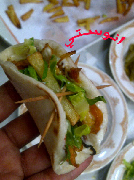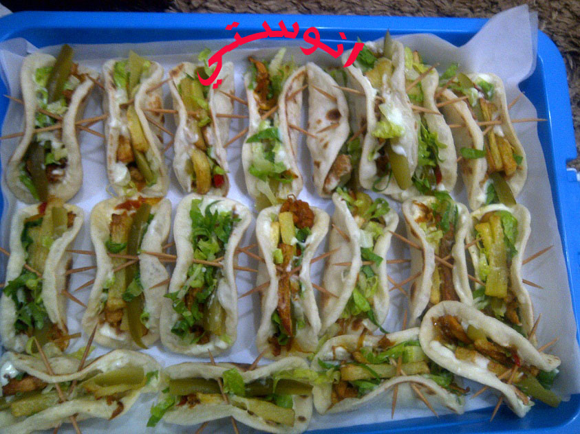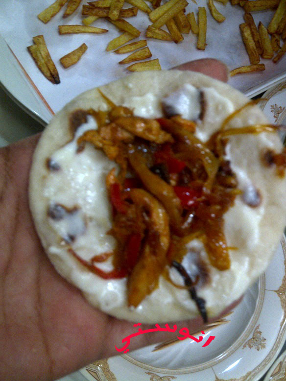 وهي عبارة عن (دجاج مقطع بطول زي الاصابع + فلفل بارد ملون مقطع بطول + بطل شرائح + ملح +بهارات +ثوم )