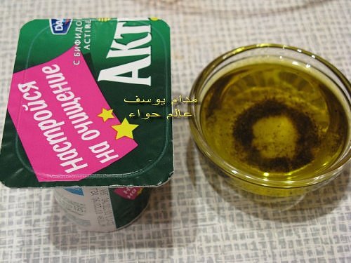 في اناء التحضير ..قطعي الافوكادوا صغيرا و ضعي عليه الزبادي و زيت الزيتون و 3 ملاعق كبيرة خل تفاح