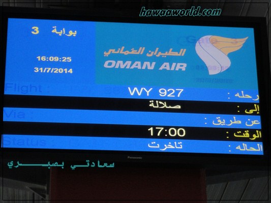 وصعدنا للراحه والاستعداد لتسليم الغرفه ونزلنا على 12ظ وطلبنا تاكسي لايصالنا للمطار توجهنا للمطار الساعه 2 للذهاب إلى صلاله والاقلاع الساعه 15:15 ولكن عند قطع التذاكر تفاجئنا بالوقت انها اصبحت 16:30 وانتظرنا وشويتين قبل لايجي الموعد اعلنوا التأخير الى 17