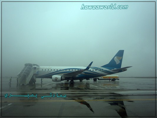 هنا عند ذهابنا للطائره والجو ممطر رذاذ طول اليوم