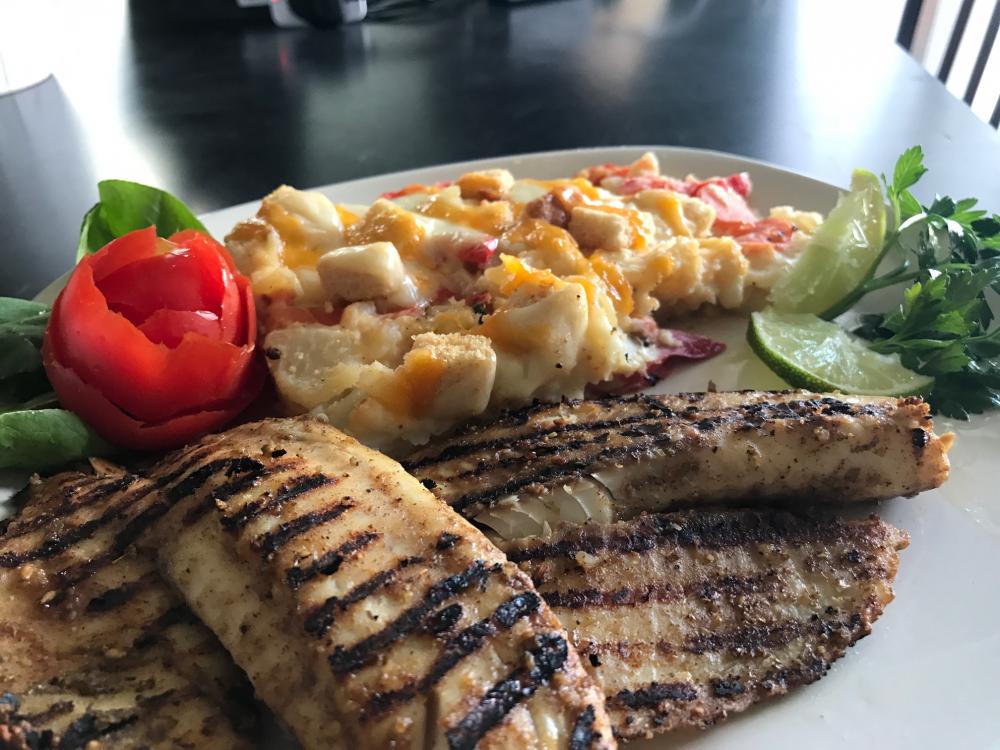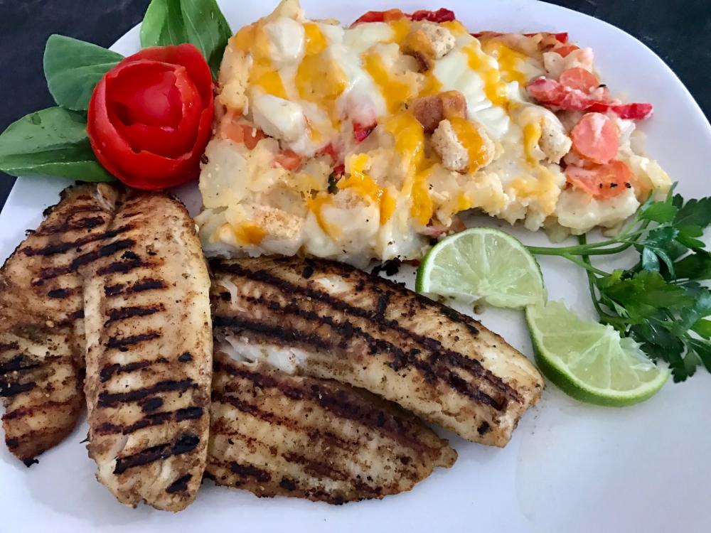 سمك بلطي فيليه مشوي مع صينية بطاطس بالجبن.... روووعة