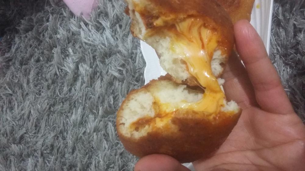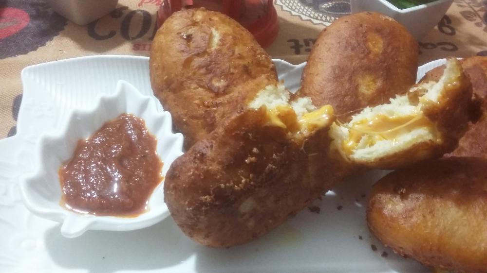 ناخذ كورة صغيرة من العجين و نفردها شوي بالزيت على الايد و نحط بالنص صالصة بيتزا و جبن شرايح و جبن مةتزاريلا و نقفلها كويس و نقليها في زيت غزير و مش سخن كثير ... نحمرها من الجهتين و تقدم ساخنة مع كوب شاي بنعناع