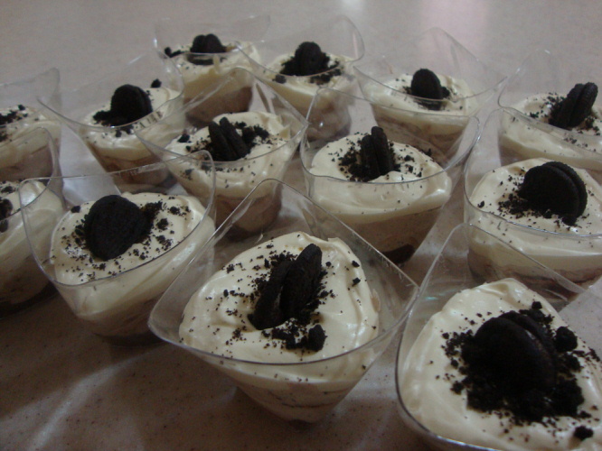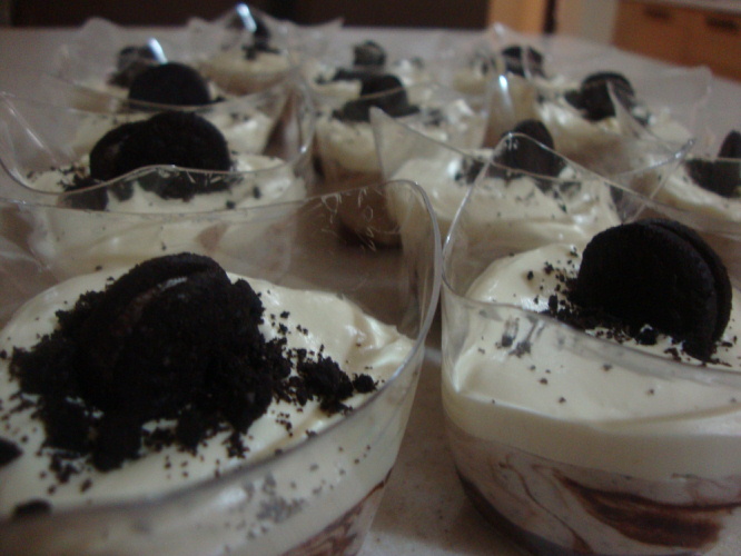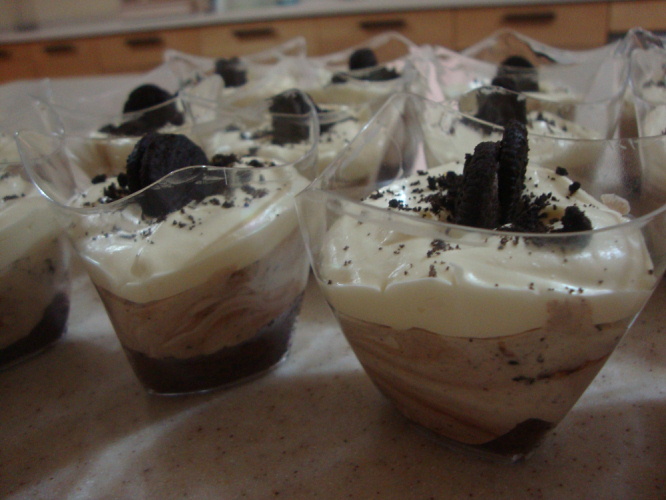 وتخلط حتى يتكون خليط متجانس وتوضع بالثلاجه نص ساعه ثم يوضع في الكاسات