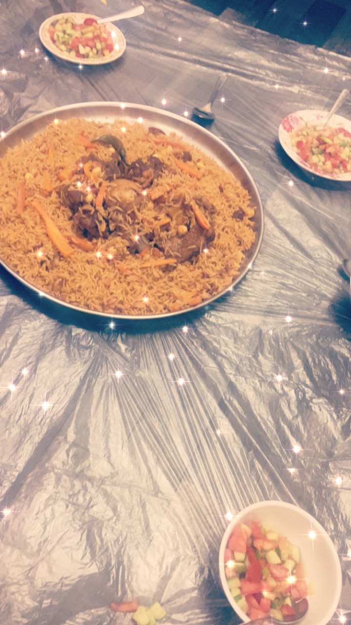 هذي بعض الصور رز عربي ورز بخاري وفتة باذنجان جوالي مارضي ينزلها نزلته من جوال بنتي ان شاء الله تعجبكم المبه المقليه والمشويه ماصورتها بنتي قلتلها صوريه ونسيت ان شاء الله اول ماسوي انزلها