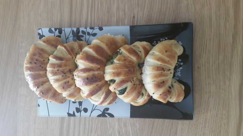 عملت فطائر بعجينة العشر دقايق محشيه جبنه بيضا وسبانخ وشوية ثوم