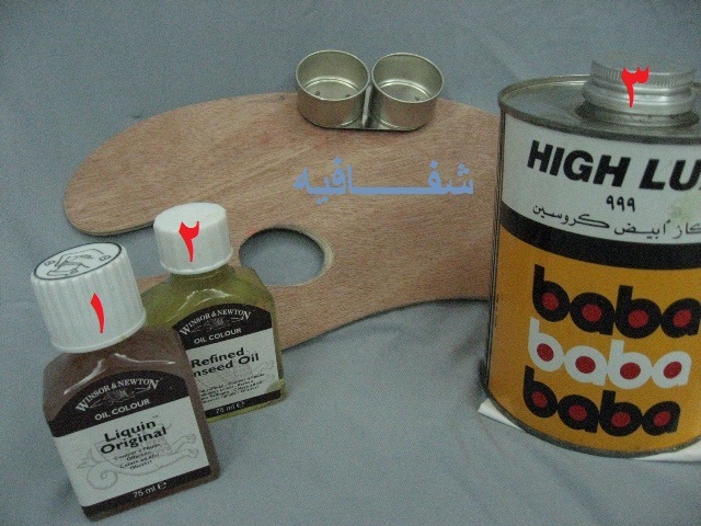 ورقم 2زيت بذرة الكتان وهو مخفف حتى تكون الالوان اسهل في الرسم