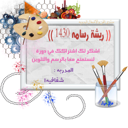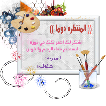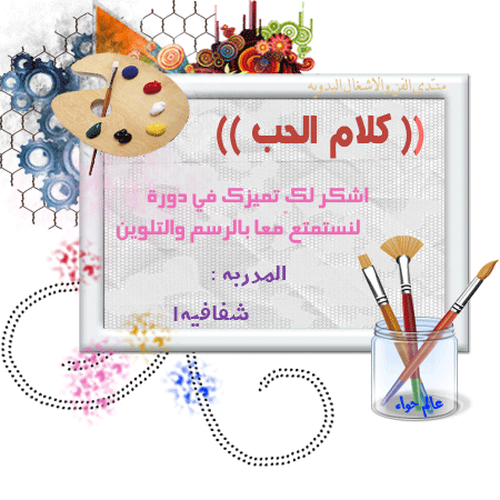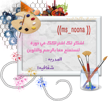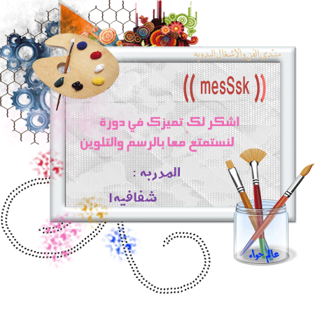 حابه اليوم وقبل ما نبدأ الدرس الأخير..اشكر كل وحده شاركتني او حتى تابعت الدروس من بعيد..