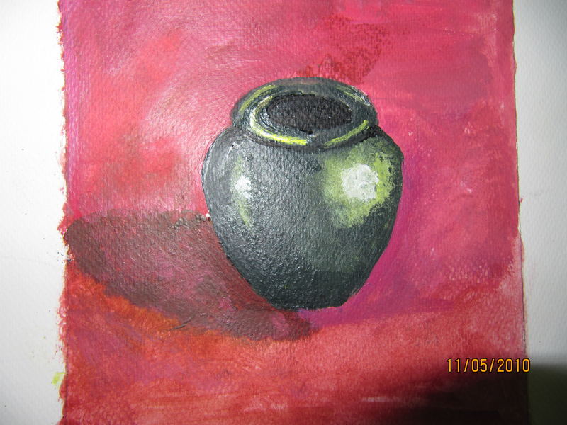 على فكرة اول مرة اتعامل مع الالوان الزيتية وعينك ما تشوف الا النور صرت مثل الارقوز بقع في كل مكان