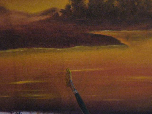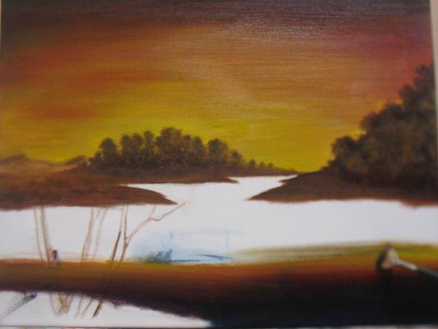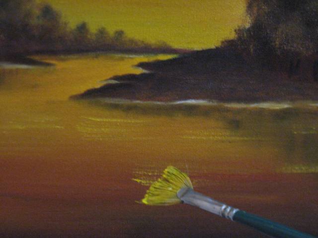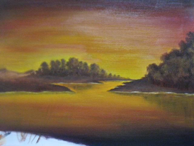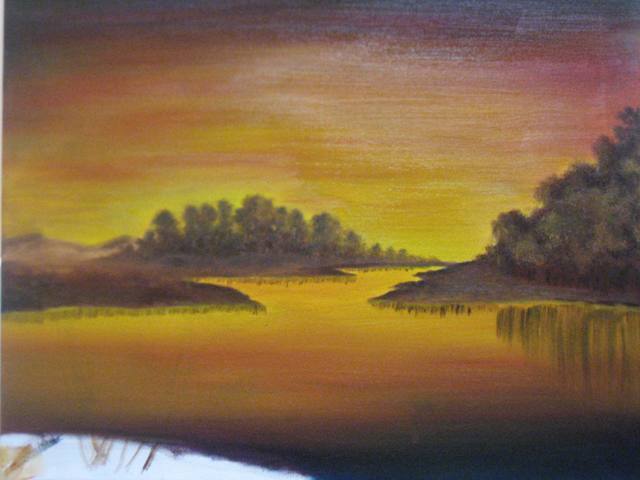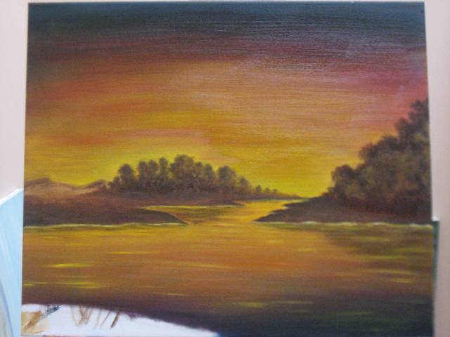 راح نوضح انعكاس الوان الغروب على ماء النهر..وتلوينه نفس تلوين السماء..