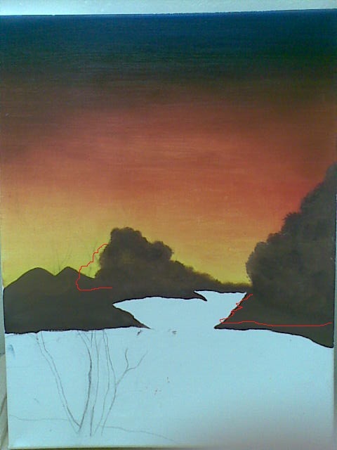 ولما جيت اعمل تدرج بالبني بين الارضية والجبل مااعرفت اخففها زيك ..ماشاء الله .. مع اني اضفت الاصفر شوي على الجبل عشان يفتح بس ما زبط معاي اللون ..