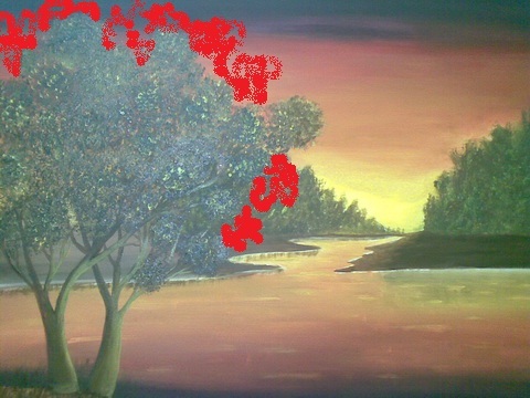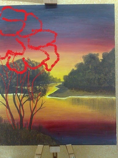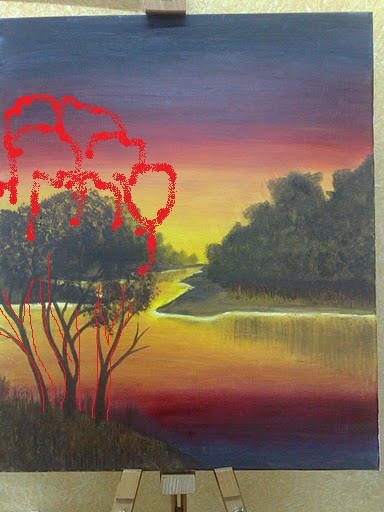 وعدلت الأشجار قدام الجبال بس لمن رسمت الشجرة الأمامية اتغطت (خخخخخخخخ تعب على الفاضي)