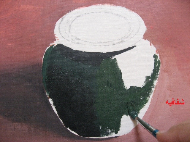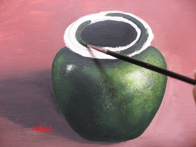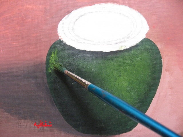 باستخدام الفرشة المدورة نظرا لان الفرشة المسطحة ما توفرت حتى الان
