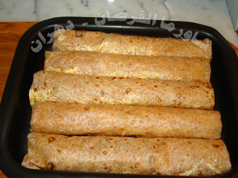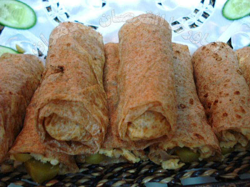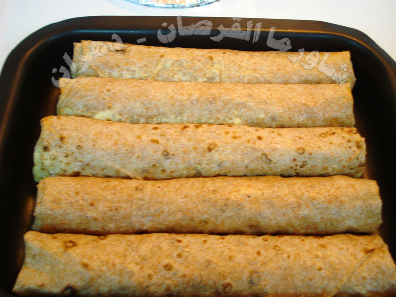 نبدأ في تحضير القرصان وتقطيعها تمهيداً للفها بالمكونات المذكورة ......