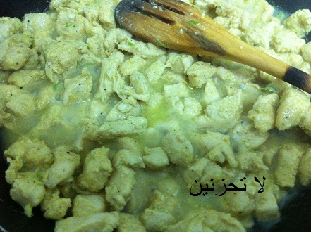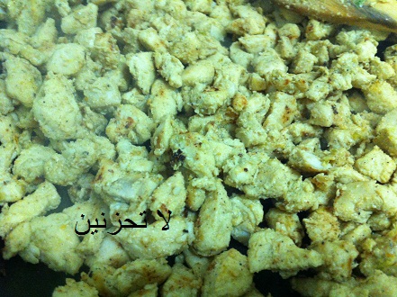 ثم نضع في المقلاة شوي زيت زيتون ونضع الشاورما ونقلبها حتى تنشف وتتحمر قليلا
