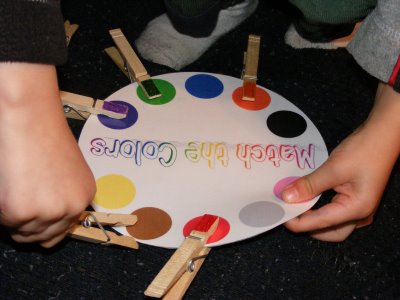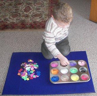 اعطيه بطاقات بالوان مختلفة وخليه يدور بالبيت يبحث عن اشياء بالوان متشابهة