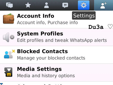 وعآد حسب الاصدآر حق الوآتس .. ي تروحين لـه عن طريق زر البلاك .. او تلاقينه علآمةة دائريةة مثل اللـي بَ الصورةة ..