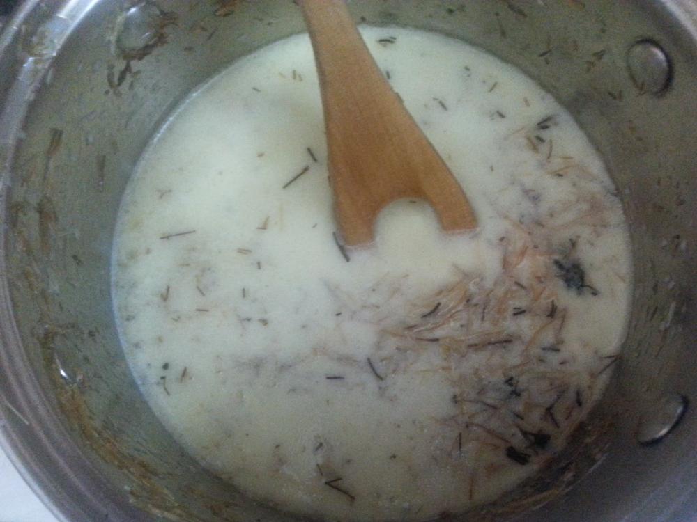 ثم نسكب الحليب الممزوج بالسكر