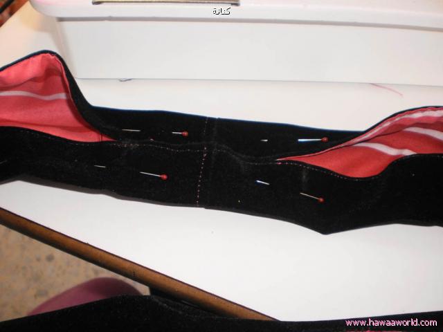 - نخيط الطبقة الخارجية من الجهة الخارجية فقط ونفس الشي مع البطانه