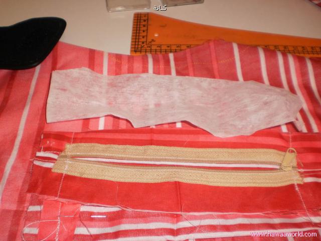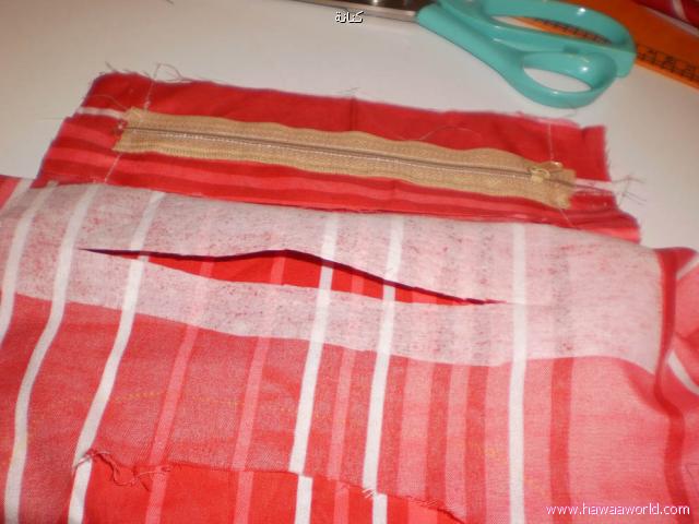 - نحدد حجم الجيب المطلوب ونحتاج سحاب بنفس الحجم هاي خطوات عمل الجيب الداخلي ان شاء الله تكون الخطوات واضحة من الصور