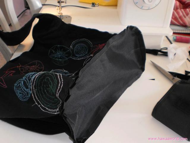 - نخيط القاع مع الحقيبة الطبقة الخارجية لوحدها والدبطانه لوحدها