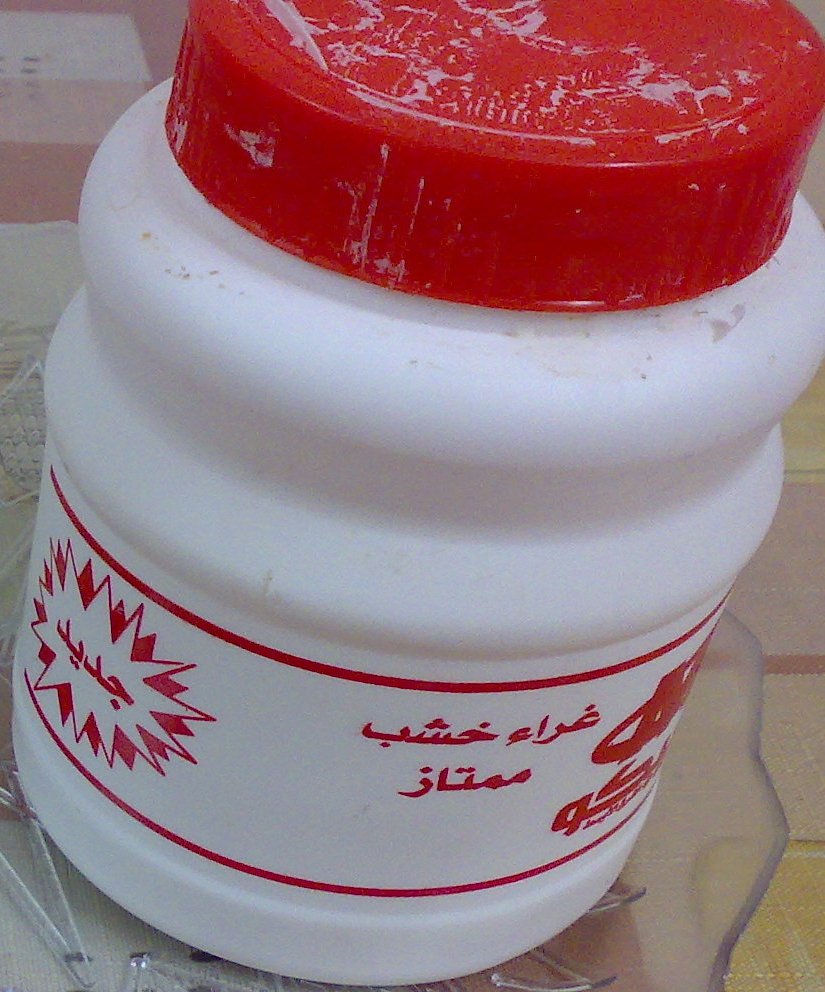 منورة ياغادتي ،، حبيبتي الغراء شوفي صورته ،، وهو معروف بغراء الخشب ،، واعتقد ان قيمته 3 ريال الصغير
