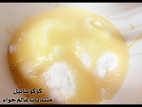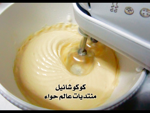 2. نضيف مقادير الطبقه الثانيه دفعه وحده ونخلطها بالخلاط الكهربائي