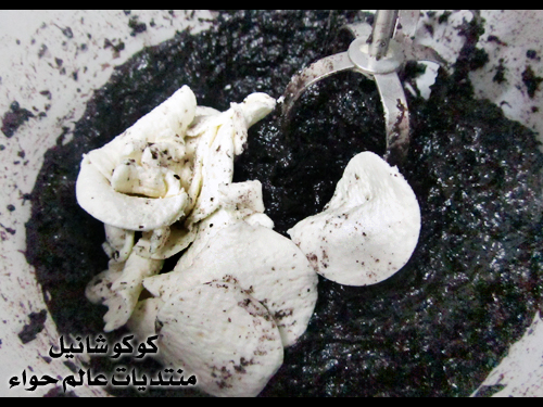 3. نفتت الاوريو مع ازالة الطبقه البيضا " بنحتاجها بعد شوي "
