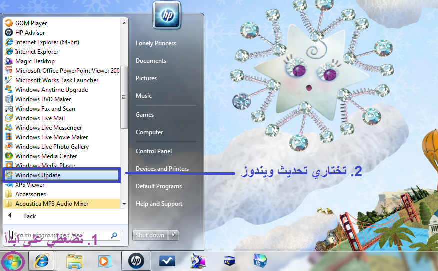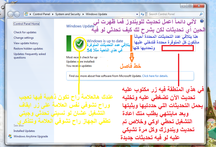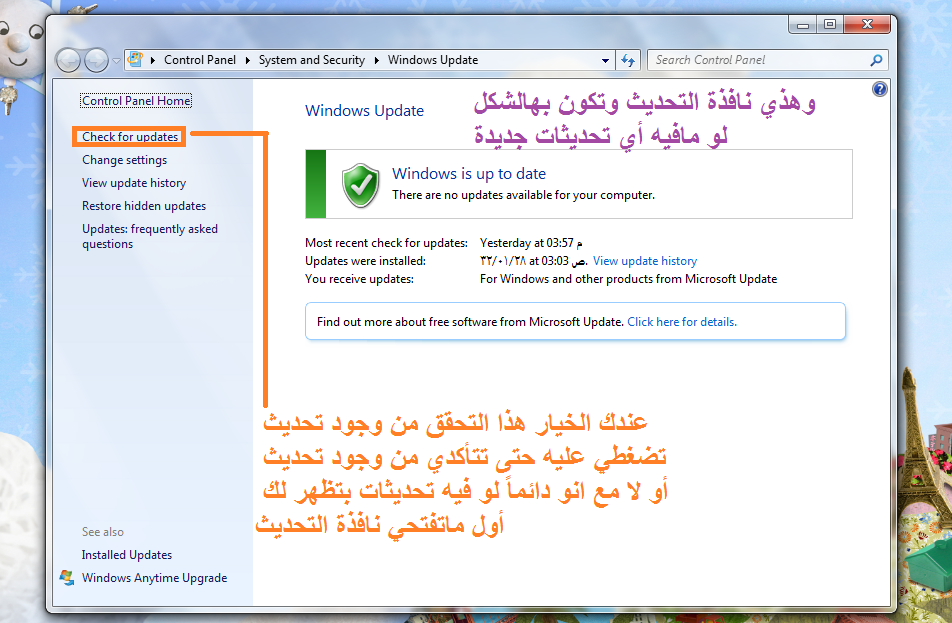 طريقة تحديث الويندوز للاستفادة ( طبعاً شرحي لويندوز 7 باقي الانظمة ماادري نفس الشغلة أو يختلف )
