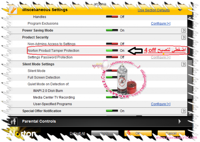 بالنسبه للرقابه الاسريه الا في برنامج النورتن كلها بالانجليزي وحسيتها صعبه