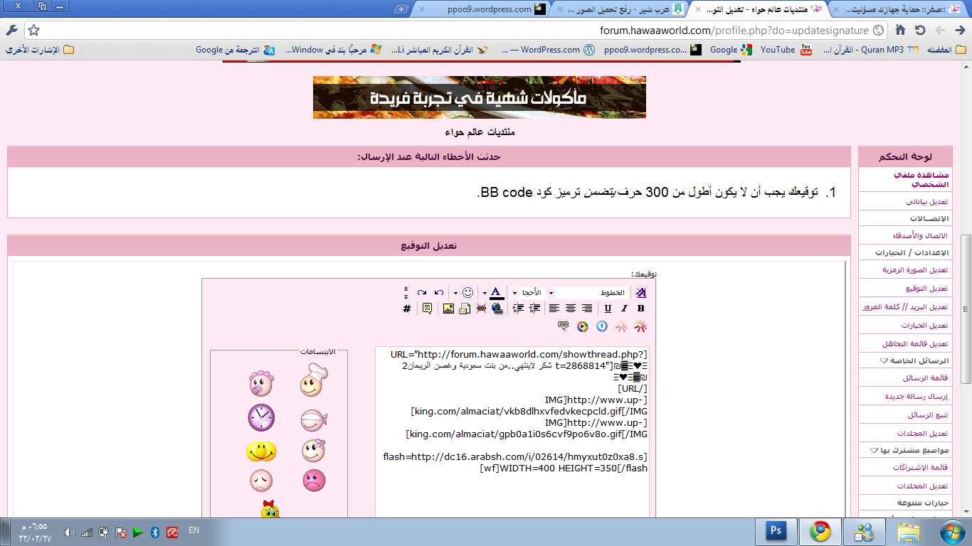 حبيت تخدمين في توقيعي ودي اضيف اخر مواضيعي وتوقيع لي والدورات وشهادات الشكر ومدونتي وموقع الفليكر.........الخ
