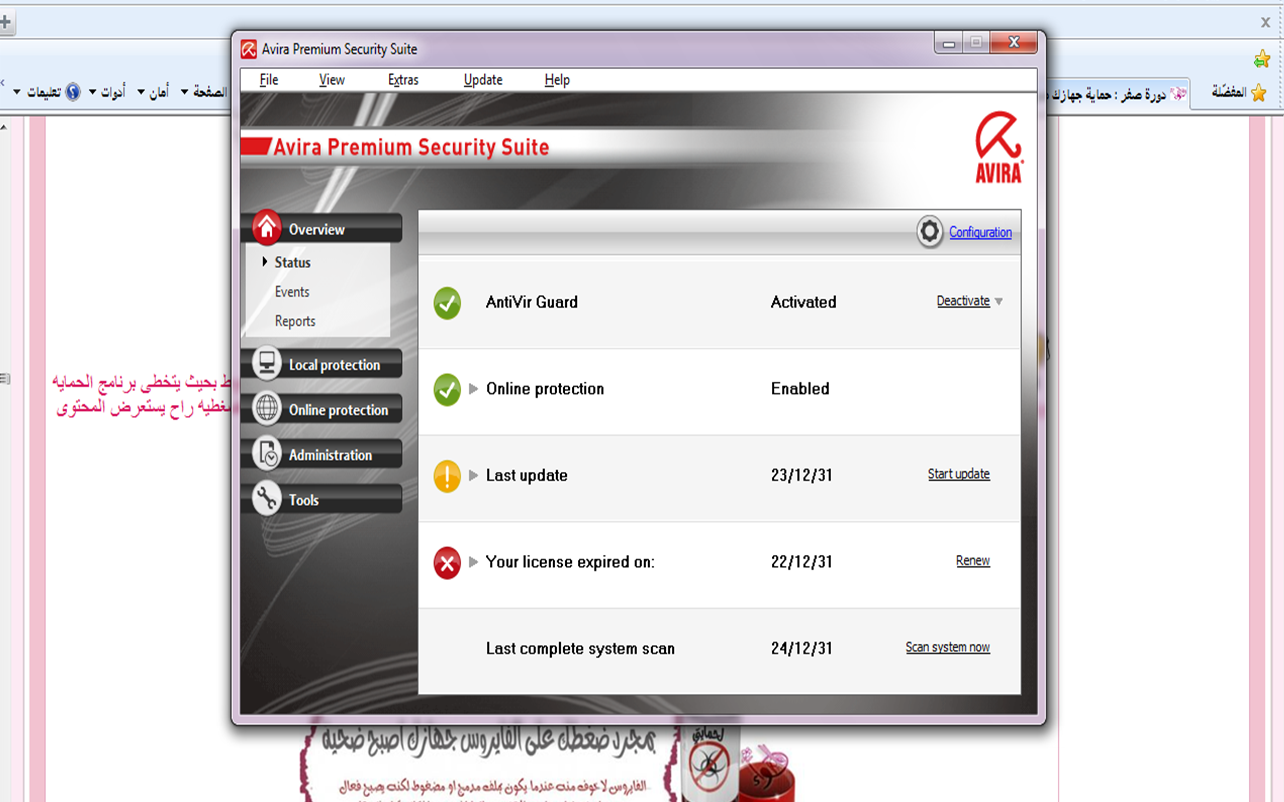 1 برنامج الحمايه عندي افيراااا بس مادري هو منتهي وكيف تحديثه؟