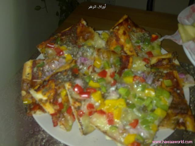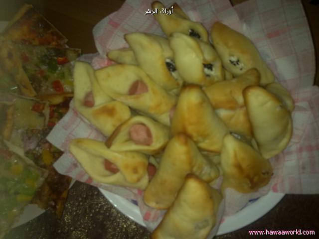 وهنا النتيجة صراحة كلمة راااائعة قليل عليها أنا سويت فطاير بالجبنة والسبانخ والسجق وبيتزا وصامولي