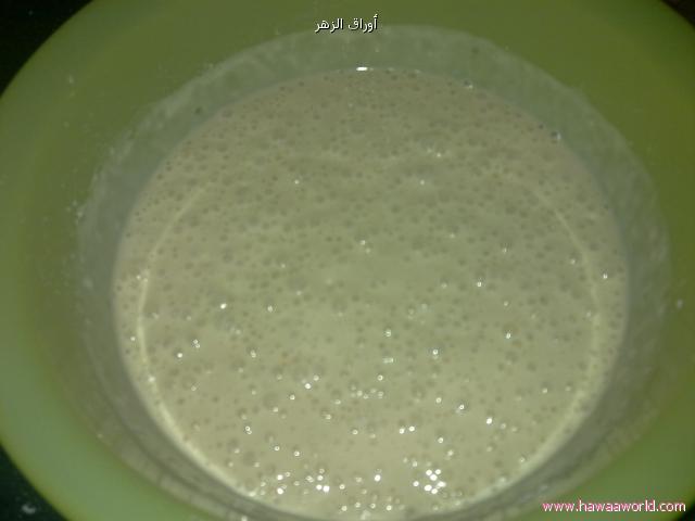 الخميره والحليب كلها ملعقه كبيره