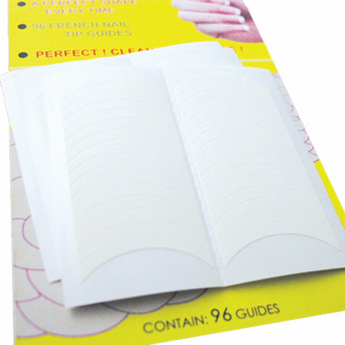 والطريقة الأخرى لعمل المناكير الفرنسي هي الملصقات للتي لا تتقن الطباعة نفس الطريقة الأولى بس المختلف استخدام اللصقات بدلا من الطباعة وهى أيضا متوفرة بمحلات كوناد