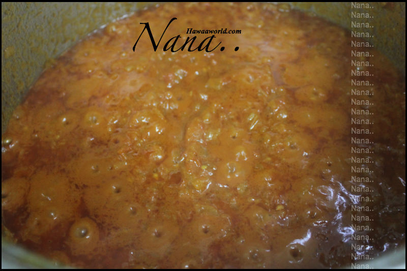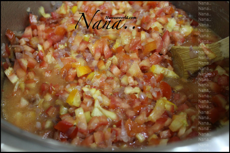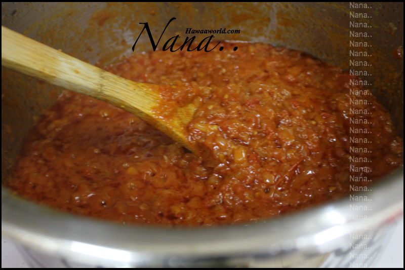 ونتركها حتى يتغير لون الطماطم ثم نضيف البهارات والفلفل الأسود