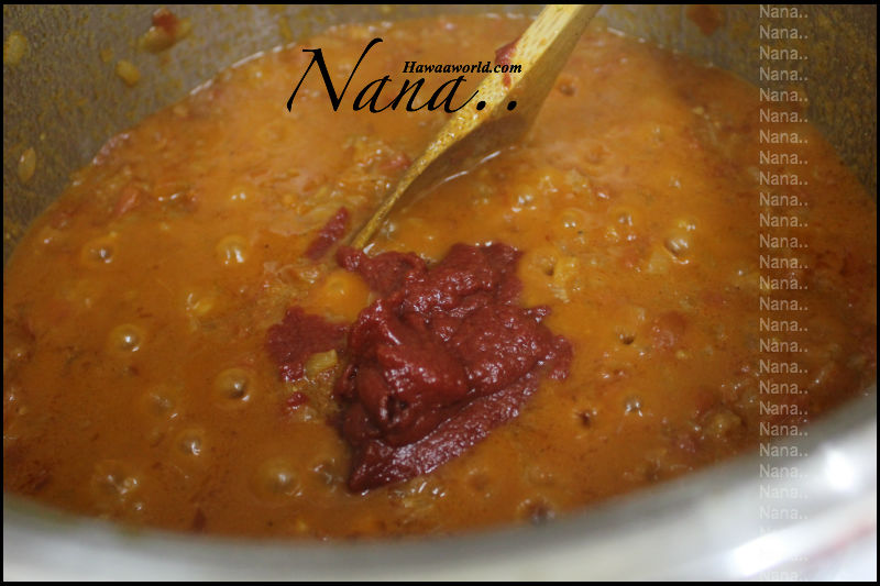 نضيف معجون طماطم بكمية كافيه وملح وسكر (( السكر عشان نوازن الطعم ))