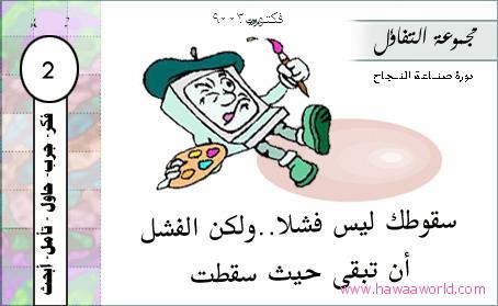 بما انني اسعى لنجاح واحبه فلن استسلم للفشل وسأنهض بقوه لتحقيق هدفي ولن اجعل الفشل يمتطيني