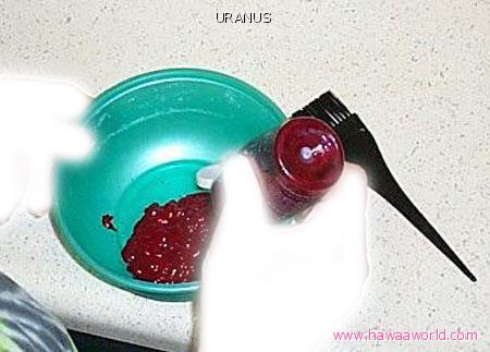 صبغات شعر بالالوان الغامقه الاحمر والعنابي وعدد بسيط من الخصل بالون الثلجي ..!!