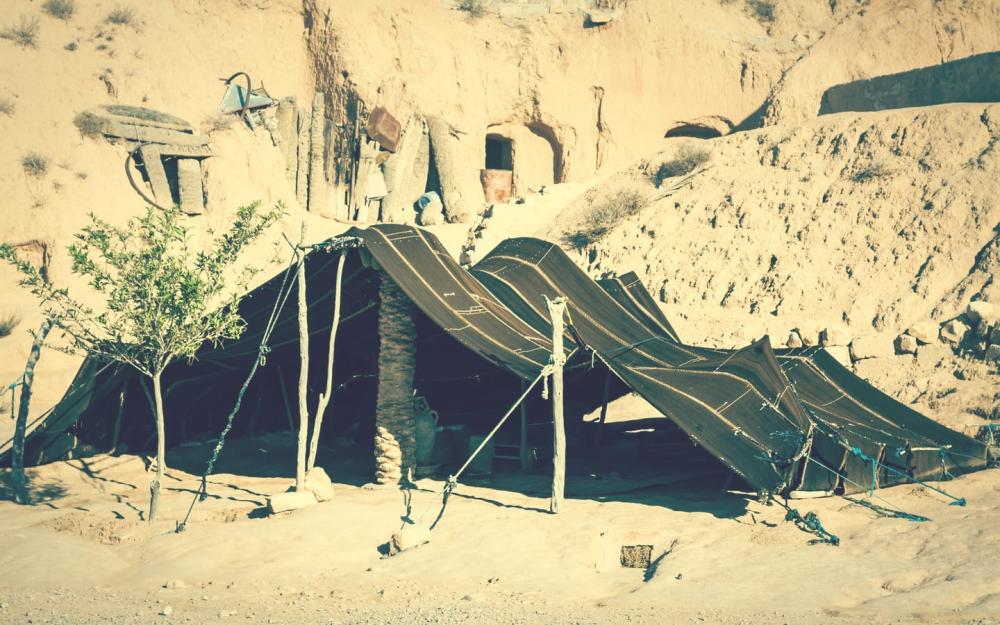 أولى أشكال البيوت قديما، حيكت من شعر الماعز وصوف الغنم، يخلط ويغزل ويبرم بإحكام ثم يطوى على شكل كروي وينصب باستخدام الحبال والأوتاد ليكون شكل الخيام المتعارف عليه، تم بناؤها في الماضي في الصحراء ويتميز هذا النع من البيوت في الامارات بسهولة النقل من مكان إلى آخر.