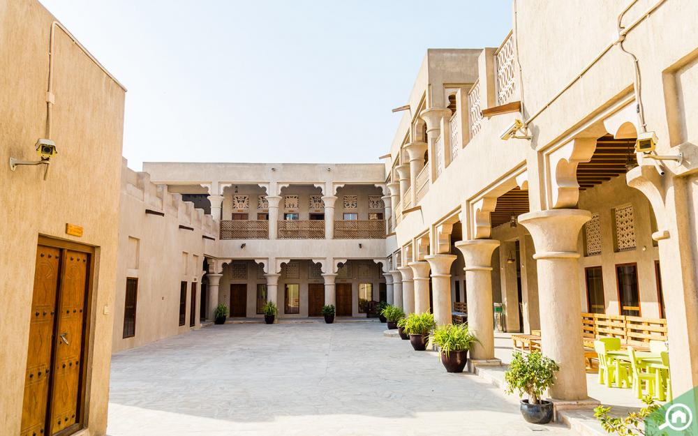 يتفرد الحي بعمرانه الخاص، وأبراج الريح التي تعتلي زوايا المباني، وهذا من التراث العمراني في دبي لتكييف البيوت.