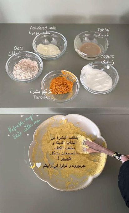ماسك للبشرة بعدها مرطب مناسب✨️🌸