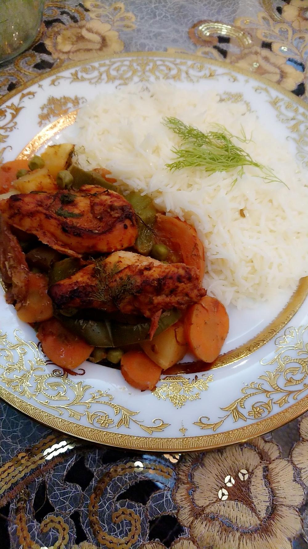 واغطيها بالقصدير وع الفرن نص ساعة وافتح القصدير لحد ما تستوي واحمرها من فوق وتقدم مع الرز الأبيض بألف عافية ❤️ 🌺