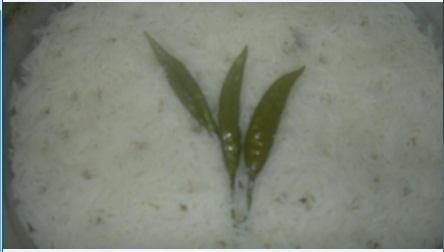 2 كوب رز منقوع ومسلوق ومضاف له الفلفل الاخضر الحار ( نكهة )