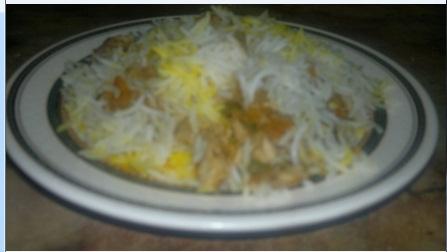 هذا سلمكم الله غدانا اليوم صينية رز بالدجاج المفتت والجزر مع البهاراااااااات اممم على الطعم