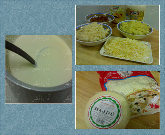 2- يخلط ملعقه من المايونيز وملعقه من الجبن وجبنة شيدر مبشوره مع المكرونه وتفرش الصينيه