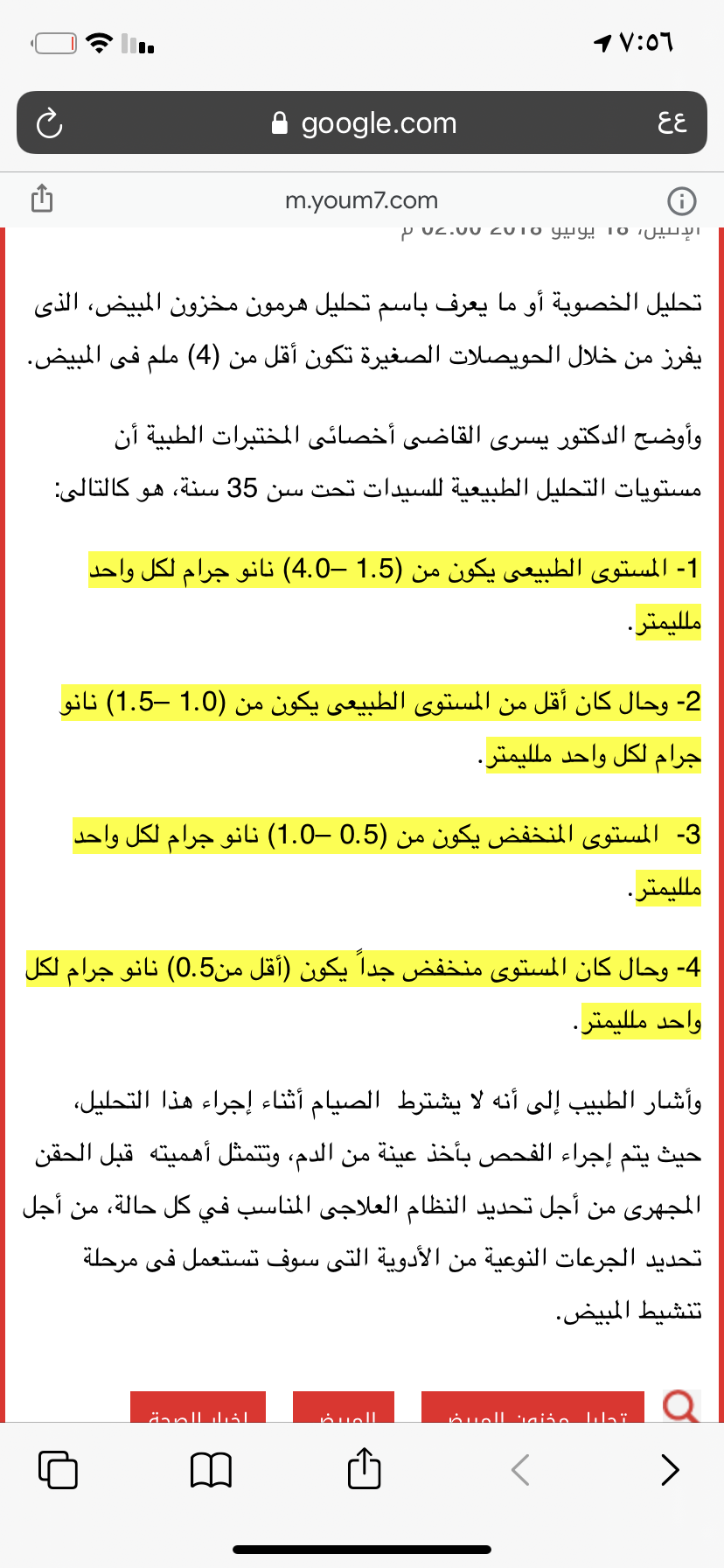 ايه صح وبقولك شي اخير .. ترى مايعتمدون غالبا على هالتحليل .. اكثر شي يوضح لهم قوة المخزون من ضعفه .. هو لما يسوون لك اشعه مهبليه عن دكتور فاهم يشوف لك عدد الحويصلات من ثاني او ثالث يوم دورة .. يعني إن شاء الله مافيك الا العافيه وكلها كم منشط وتحملين طبيعي .. هالكلام سمعته في مقطع مع الدكتور المصري المشهور احمد طلبه .. يقوله.. اكتبي باليوتيوب ضعف المخزون .. طلبه واسمعيه بنفسك ..