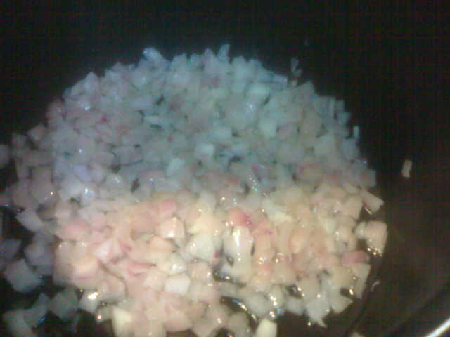 بنقطع البصلة وبنقلبها بالزيت حتى تتذبل