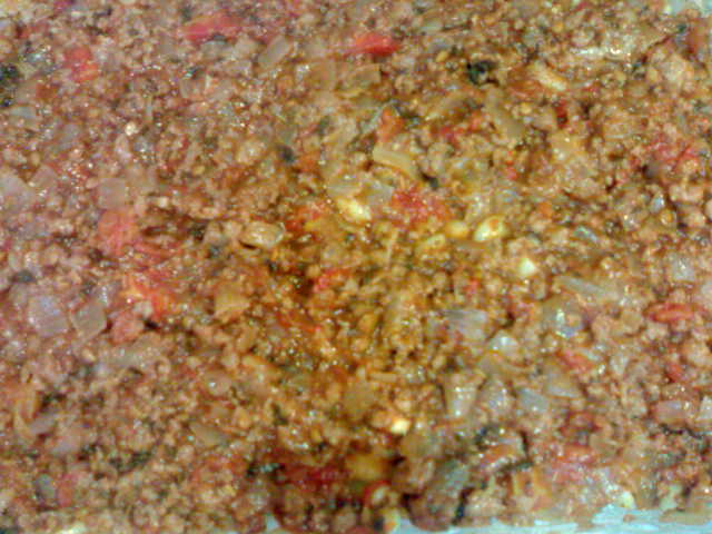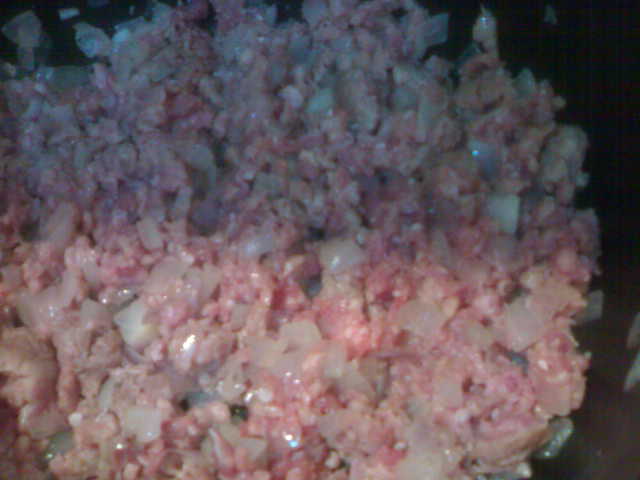 ثم نضع خلطة اللحمة وابنفردها منيح
