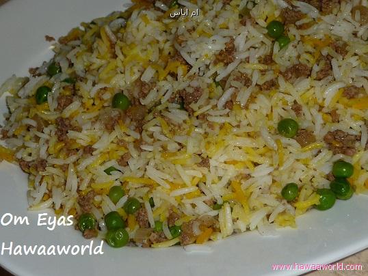 او ممكن طبخ الرز وحده واللحمة المفرومة وحدها ثم عند التقديم يوضع الرز وفوقه اللحمة المفرومة