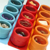 استخدام العلب الصغيره الدائرية الشكل لوضع متعلقات الخياطه الصغيره وترتيبها على كرتون مقوى بنفس اللون او بعد تغليفهم بالقماش المرغوب ثم تلصق عليه وتعلق او توضع بالدرج او المكتب